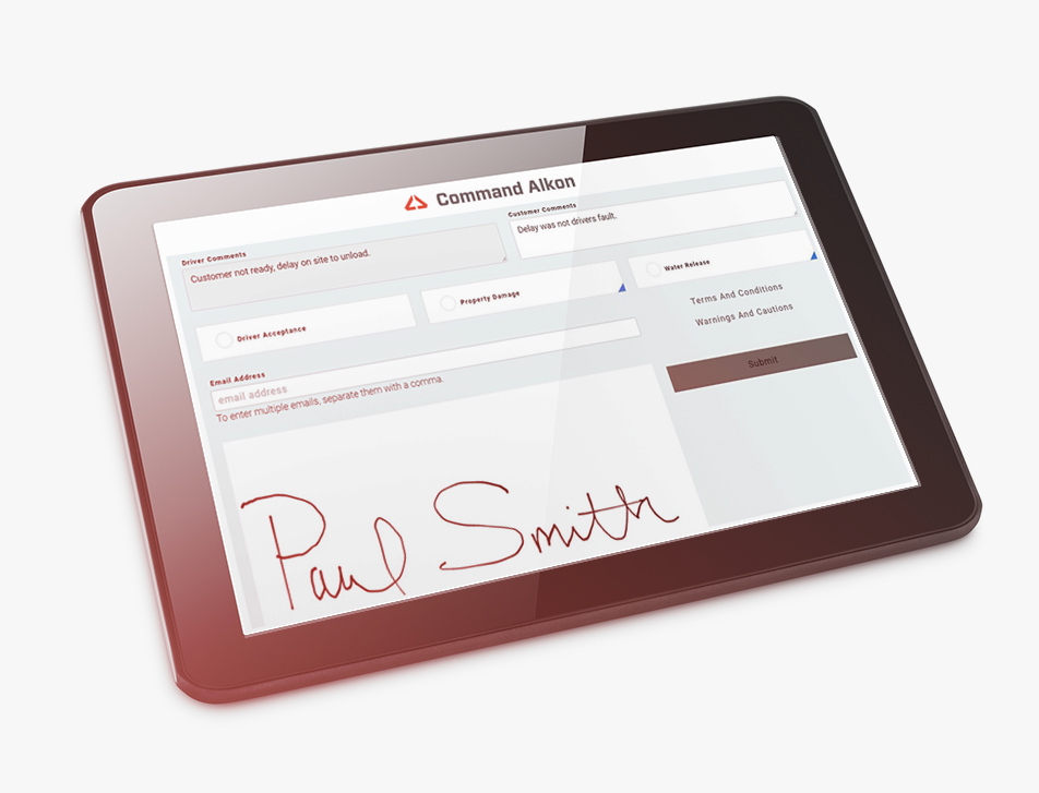 Los clientes pueden revisar los términos y condiciones, agregar comentarios, evaluar el desempeño del conductor y firmar exenciones antes de la firma final.